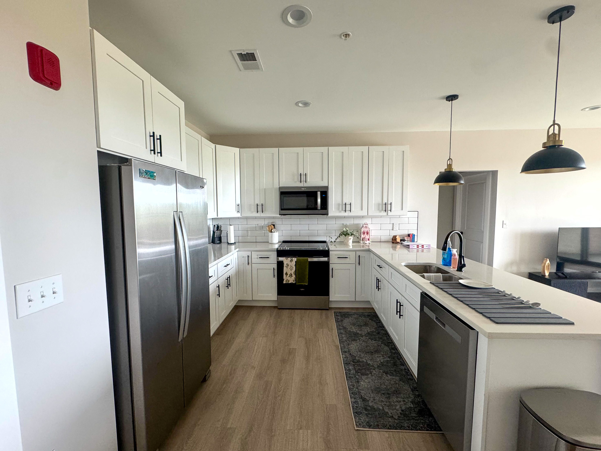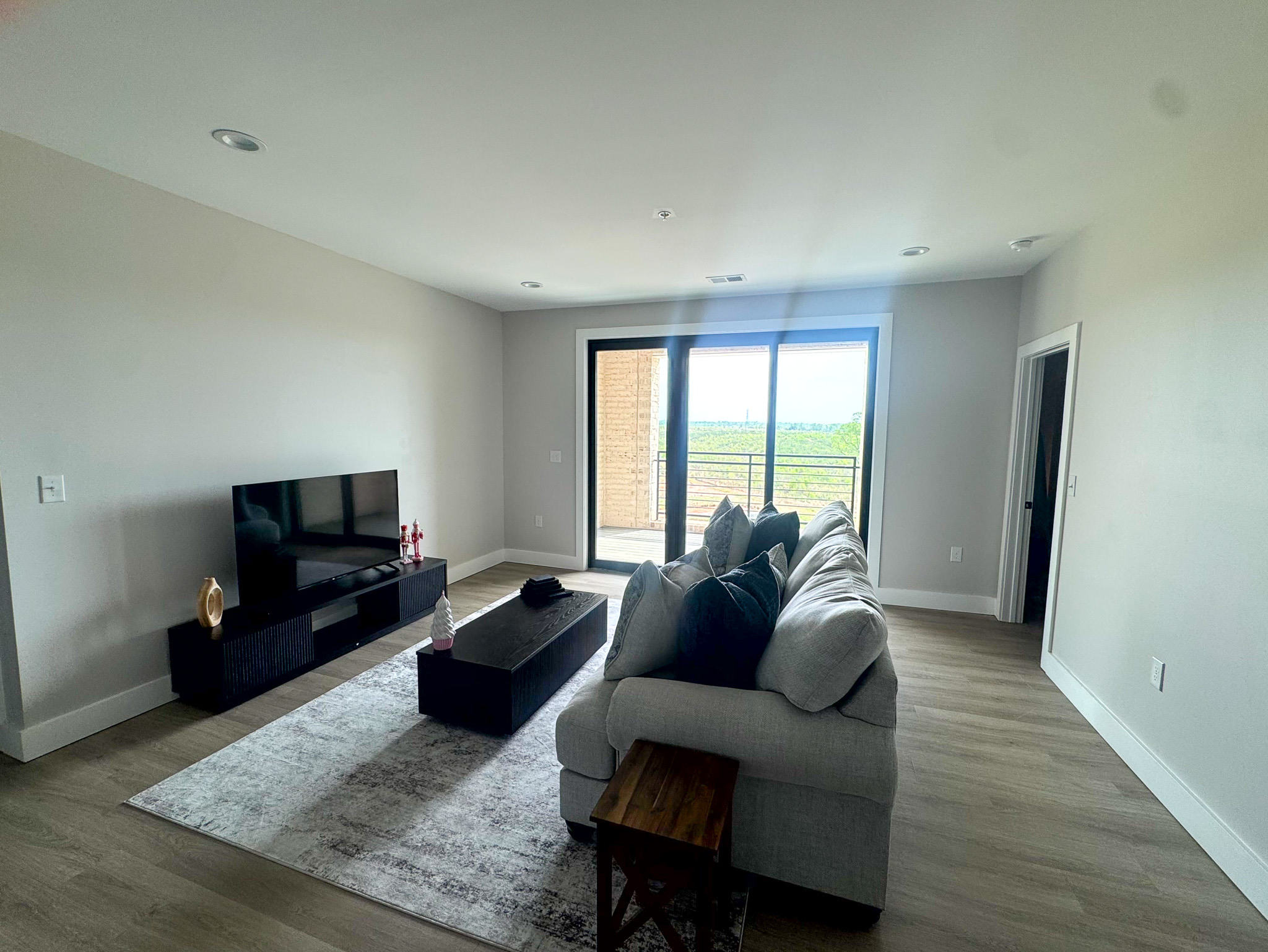 The unit features a spacious, open floor plan with wide doorways that support ease of movement. The apartment is equipped with central heating and air conditioning. Maria does not own any pets. The condo also includes a large back deck that offers a scenic view of surrounding trees and natural landscape, providing a peaceful outdoor space.